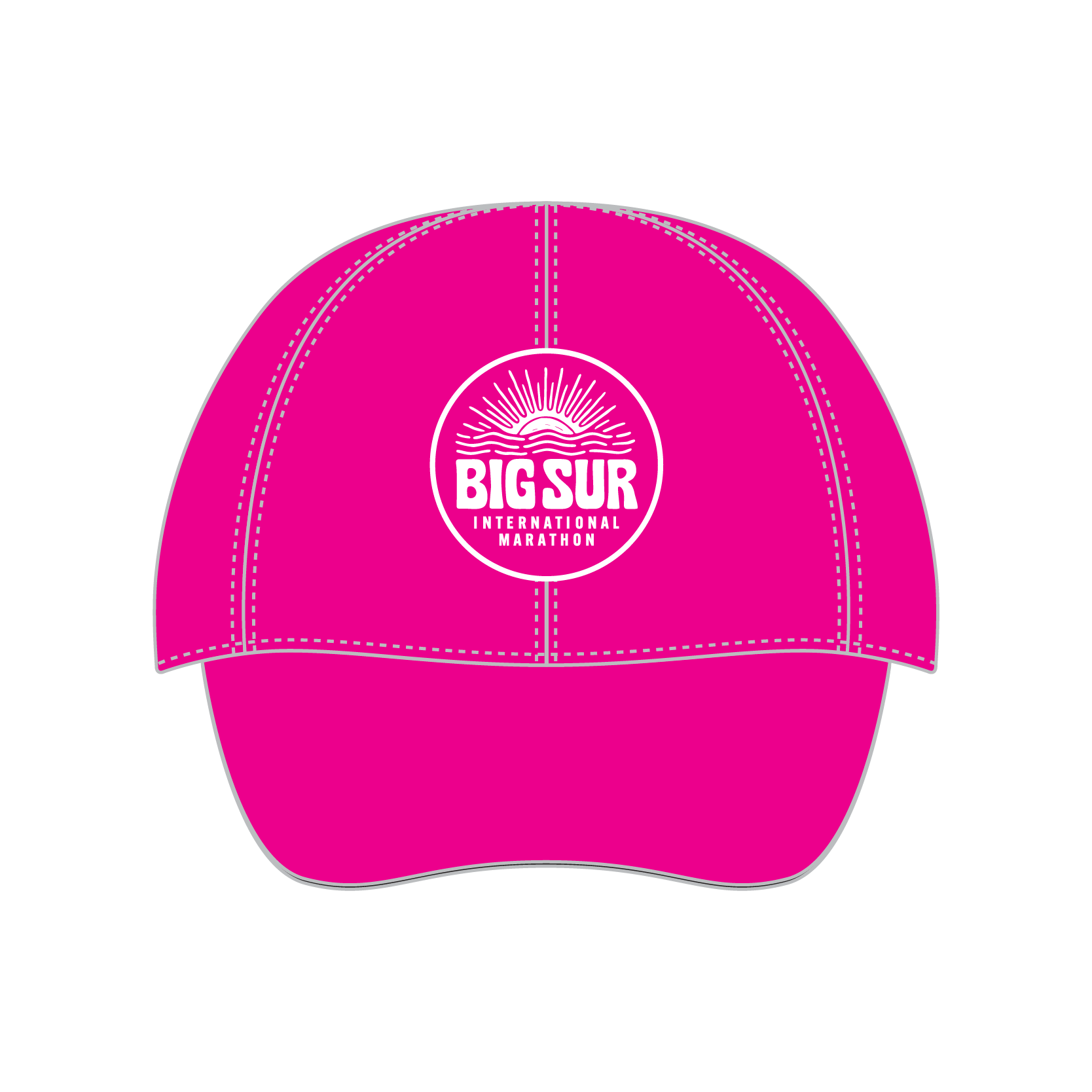 Big Sur International Marathon Headwear. Lightweight wicking woven poly panels with Dry Tech mesh side panels; soft poly mesh wicking sweatband; adjustable back snap buckle; black underside bill to reduce glare; curved bill; machine washable. From Boco. Sizing 6.87"-7.37" (53-57 cm). Item ID biphC429
